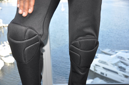 Womens navy legging with knee pad protection built in